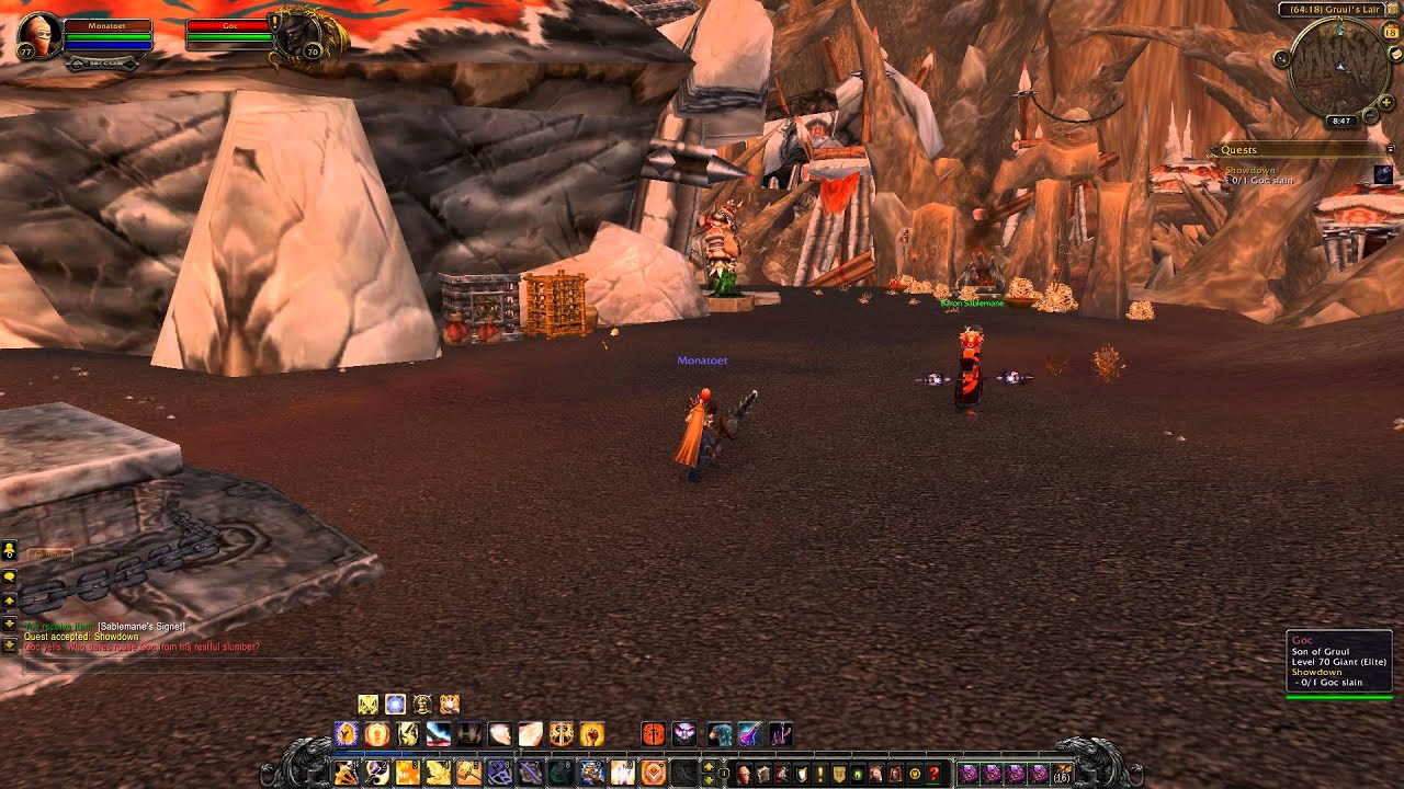It can be found outside Gruuls Lair in Blades Edge Mountains. Your goal is to make enough damage so that Goc dies before the Baron does. 642185 Players need to summon Goc here for the quests 20-30GShowdown.