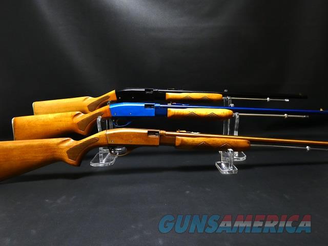 RARE Remington Model 572 Fieldmaster Lightweight. 1 Buckskin Tan and 1 Teal Wing Blue. Remington model 572 lightweightbuckskin tan anodized alloy reciever and barrel finish 85checkered sun grain wood stock forearm in very.