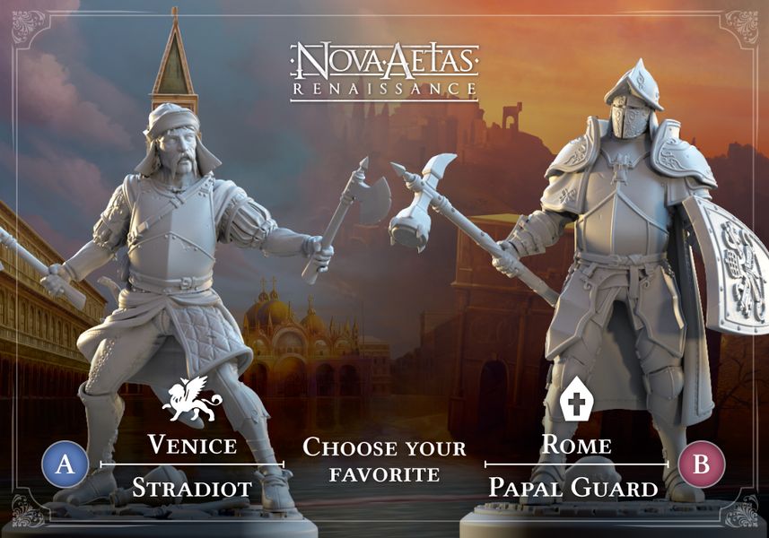 The main targets are realism extended gameplay. The Old Medieval World is vanishing. Nova Aetas Renaissance is a cooperative tactical boardgame set in a fantastic and dark Italian Renaissance.